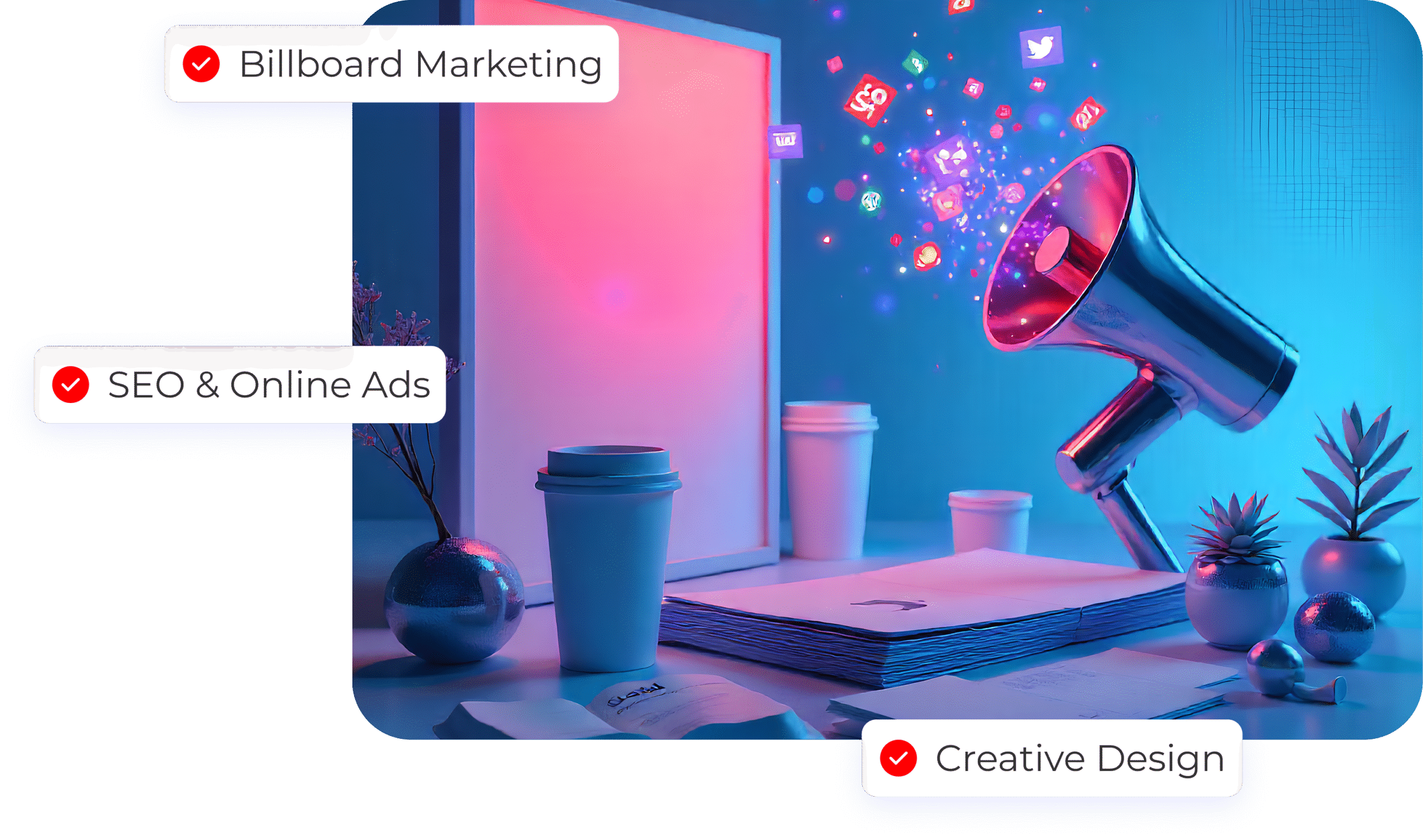 Outdoor Advertising Social Media Marketing SEO & Online Campaigns Brand Strategy & Design
